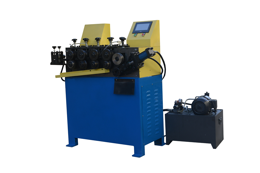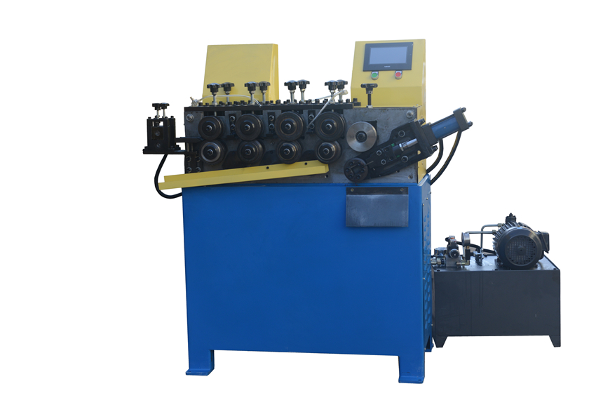 This machine is used for rolling lock-ring for paper drum. It is controlled by PLC and Inverter, cutting mode is hydraulic, the max pressure70kg/cm2.